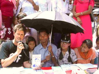 der Chefredakteur der Himalaya Post dem Zeitungsverkäufer einen